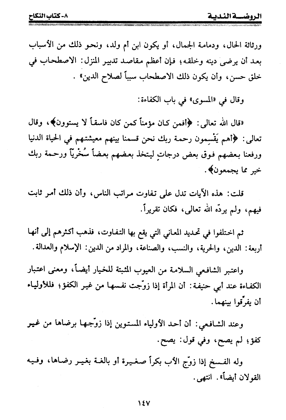 ثم اختلفوا في تحديد المعاني التي يقع بها التفاوت، فذهب أكثرهم إلى أنها أربعة: الدين، والحرية، والنسب، والصناعة، والمراد من الدين: الإسلام والعدالة.