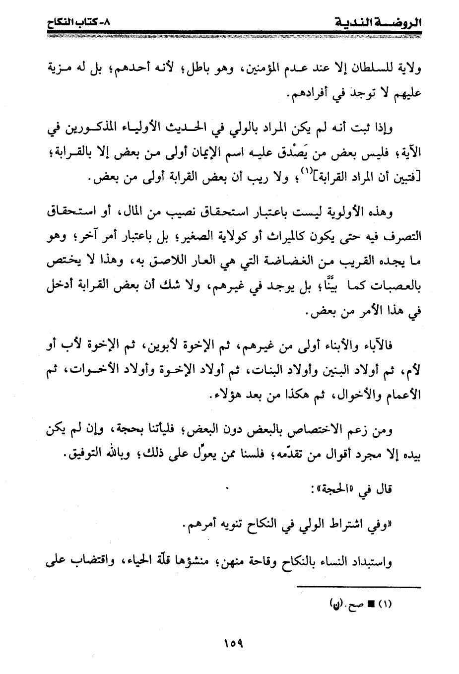 وهذه الأولوية ليست باعتبار استحقاق نصيب من المال، أو استحقاق التصرف فيه حتى يكون كالميراث أو كولاية الصغير؛ بل باعتبار أمر آخر؛ وهو ما يجده القريب من الغضاضة التي هي العار اللاصق به، وهذا لا يختص بالعصبات كما بينا؛ بل يوجد في غيرهم، ولا شك أن بعض القرابة أدخل في هذا الأمر من بعض.