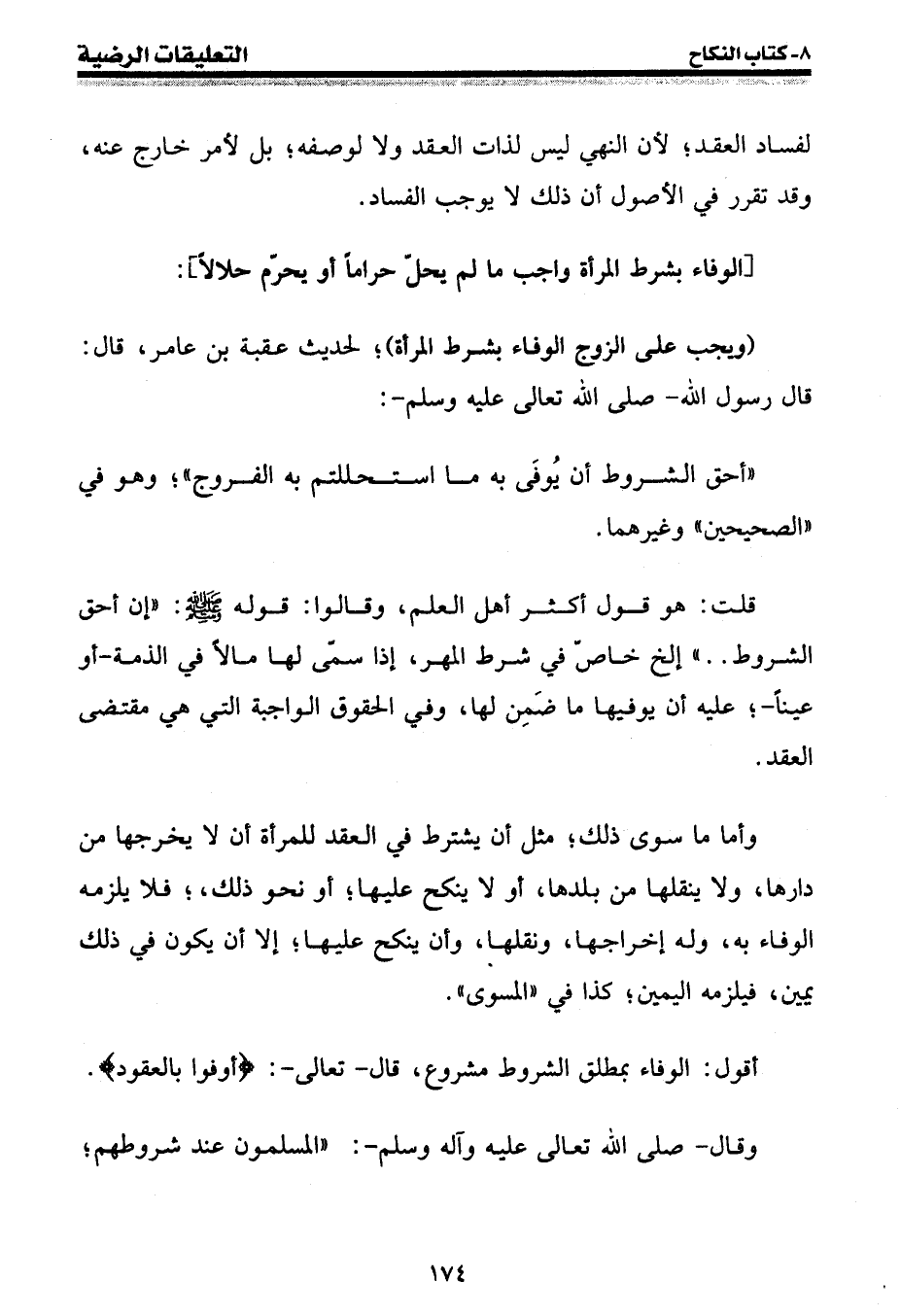 وقال - صلى الله عليه وسلم -: " المسلمون عند شروطهم؛