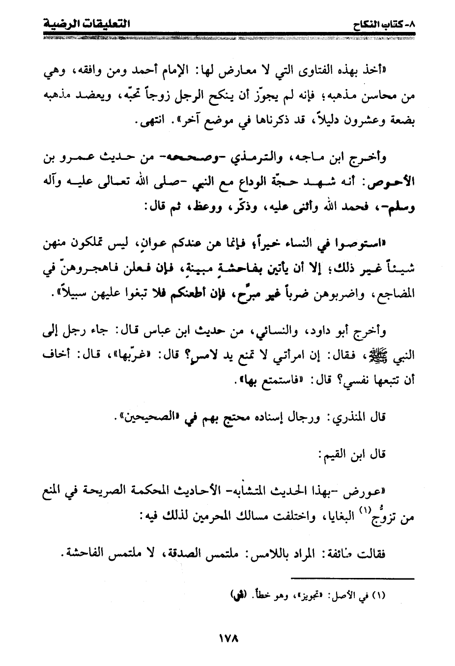 " عورض - بهذا الحديث المتشابه - الأحاديث المحكمة الصريحة في المنع من تزوج (¬1) البغايا، واختلفت مسالك المحرمين لذلك فيه: