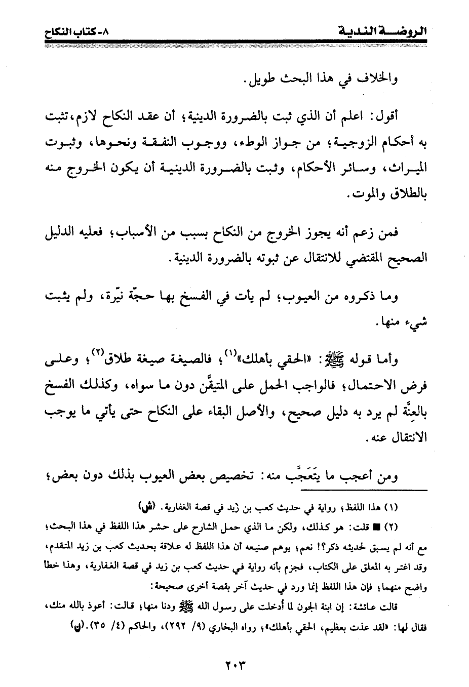 وأما قوله صلى الله عليه وسلم: " الحقي بأهلك " (¬1) ؛ فالصيغة صيغة طلاق (¬2) ؛ وعلى فرض الاحتمال؛ فالواجب الحمل على المتيقن دون ما سواه، وكذلك الفسخ بالعنة لم يرد به دليل صحيح، والأصل البقاء على النكاح حتى يأتي ما يوجب الانتقال عنه.
