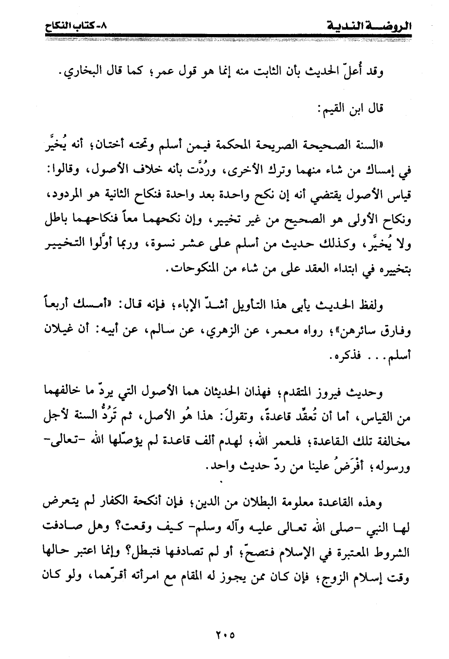 ولفظ الحديث يأبى هذا التأويل أشد الإباء؛ فإنه قال: " أمسك أربعا وفارق سائرهن "؛ رواه معمر، عن الزهري، عن سالم، عن أبيه: أن غيلان أسلم ... فذكره.