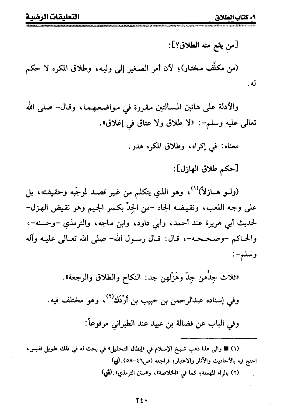 (¬1) • وإلى هذا ذهب شيخ الإسلام في " إبطال التحليل " في بحث له في ذلك طويل نفيس، احتج فيه بالأحاديث والآثار والاعتبار؛ فراجعه (ص 46 - 58) . (ن)