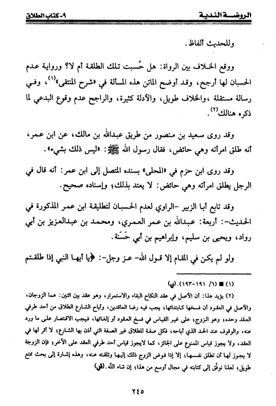 ووقع الخلاف بين الرواة: هل حُسبت تلك الطلقة أم لا؟ ورواية عدم الحسبان لها أرجح، وقد أوضح الماتن هذه المسألة في " شرح المنتقى " (¬1) ، وفي رسالة مستقلة، والخلاف طويل، والأدلة كثيرة، والراجح عدم وقوع البدعي لما ذكره هنالك (¬2) .
