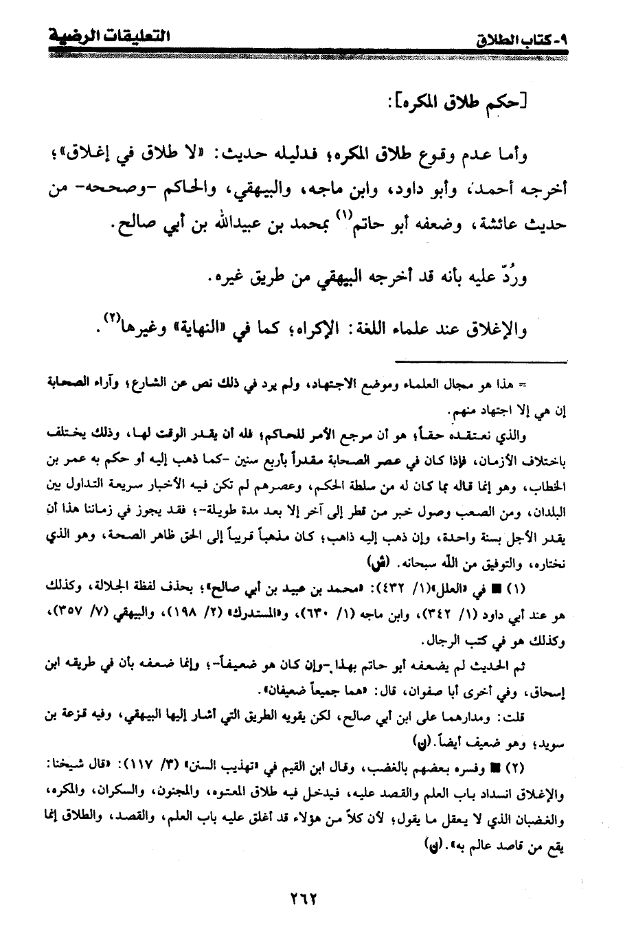 (2) • وفسره بعضهم بالغضب، وقال ابن القيم في " تهذيب السنن " (3 / 117) : " قال شيخنا: والإغلاق انسداد باب العلم والقصد عليه، فيدخل فيه طلاق المعتوه، والمجنون، والسكران، والمكره، والغضبان الذي لا يعقل ما يقول؛ لأن كلا من هؤلاء قد أغلق عليه باب العلم، والقصد، والطلاق إنما يقع من قاصد عالم به ". (ن)