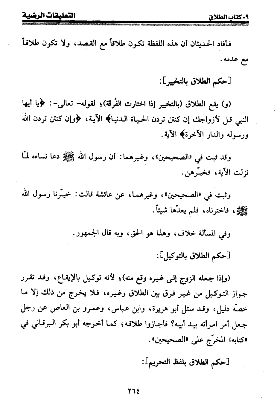 (و) يقع الطلاق (بالتخيير إذا اختارت الفرقة) ؛ لقوله - تعالى -: {يا أيها النبي قل لأزواجك إن كنتن تردن الحياة الدنيا} الآية، {وإن كنتن تردن الله ورسوله والدار الآخرة} الآية.