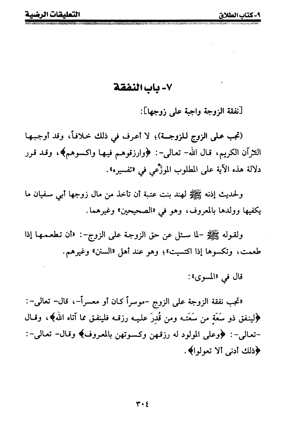 " تجب نفقة الزوجة على الزوج - موسرا كان أو معسرا -، قال - تعالى - {لينفق ذو سعة من سعته ومن قدر عليه رزقه فلينفق مما آتاه الله} ، وقال - تعالى -: {وعلى المولود له رزقهن وكسوتهن بالمعروف} وقال - تعالى -: {ذلك أدنى ألا تعولوا} .