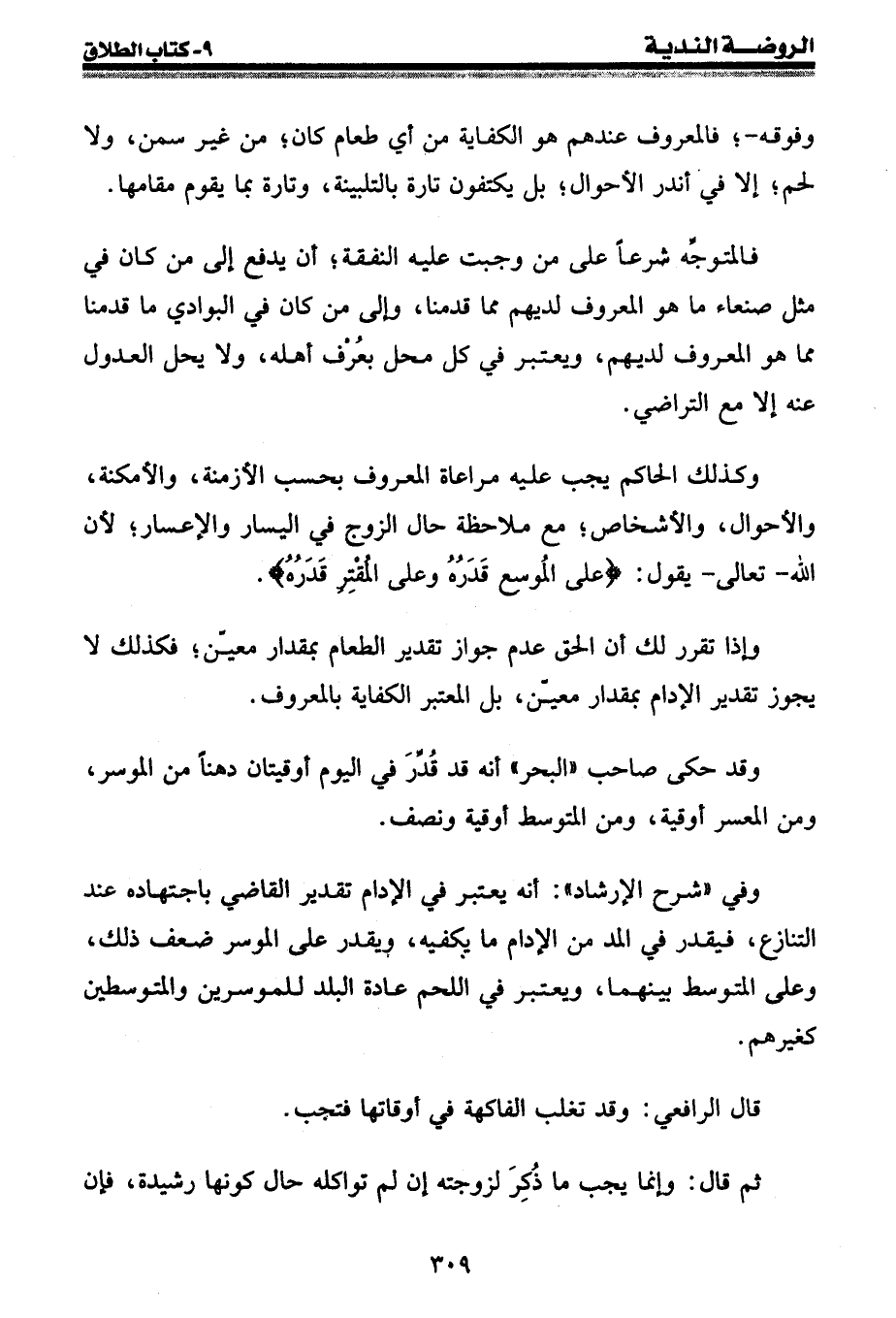وكذلك الحاكم يجب عليه مراعاة المعروف بحسب الأزمنة، والأمكنة، والأحوال، والأشخاص؛ مع ملاحظة حال الزوج في اليسار والإعسار؛ لأن الله - تعالى - يقول: {على الموسع قدره وعلى المقتر قدره} .