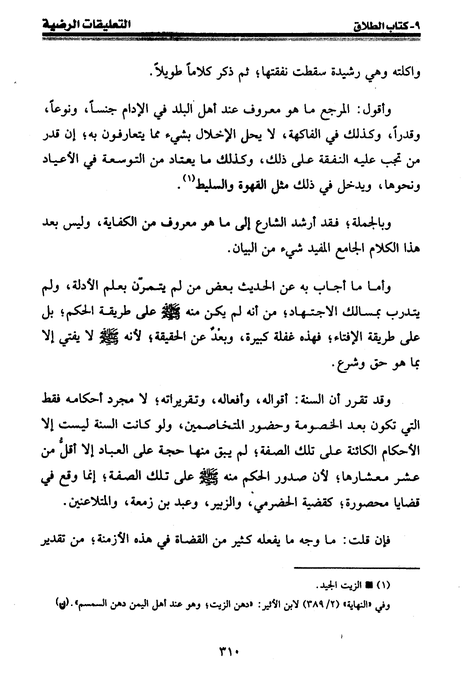 وأقول: المرجع ما هو معروف عند أهل البلد في الإدام جنسا، ونوعا، وقدرا، وكذلك في الفاكهة، لا يحل الإخلال بشيء مما يتعارفون به؛ إن قدر من تجب عليه النفقة على ذلك، وكذلك ما يعتاد من التوسعة في الأعياد ونحوها، ويدخل في ذلك مثل القهوة والسليط (¬1) .