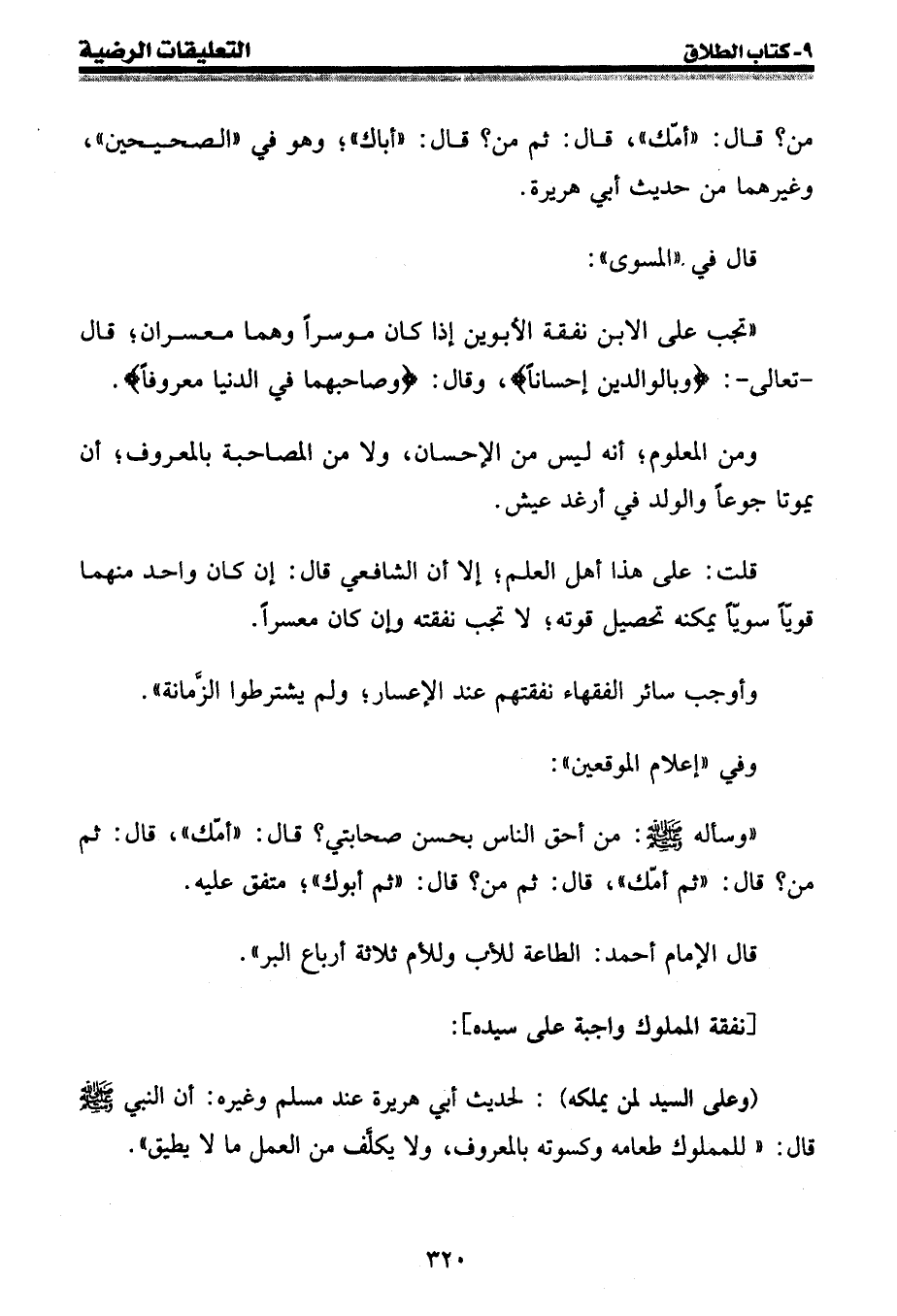 من؟ قال: " أمك "، قال: ثم من؟ قال: " أباك "؛ وهو في " الصحيحين "، وغيرهما من حديث أبي هريرة.