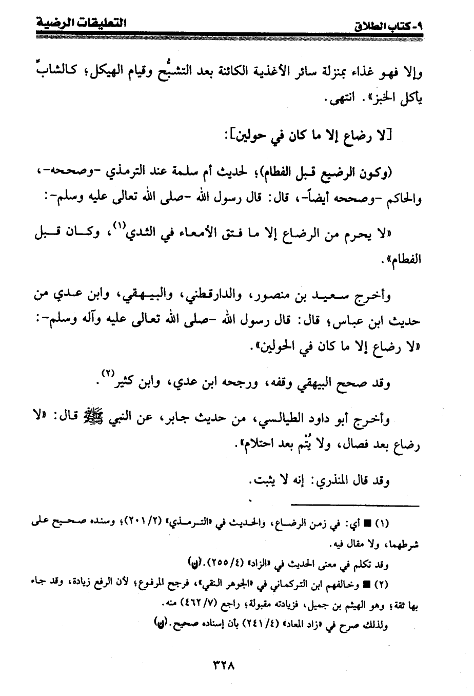 وأخرج سعيد بن منصور، والدارقطني، والبيهقي، وابن عدي من حديث ابن عباس؛ قال: قال رسول الله - صلى الله عليه وسلم -: " لا رضاع إلا ما كان في الحولين ".