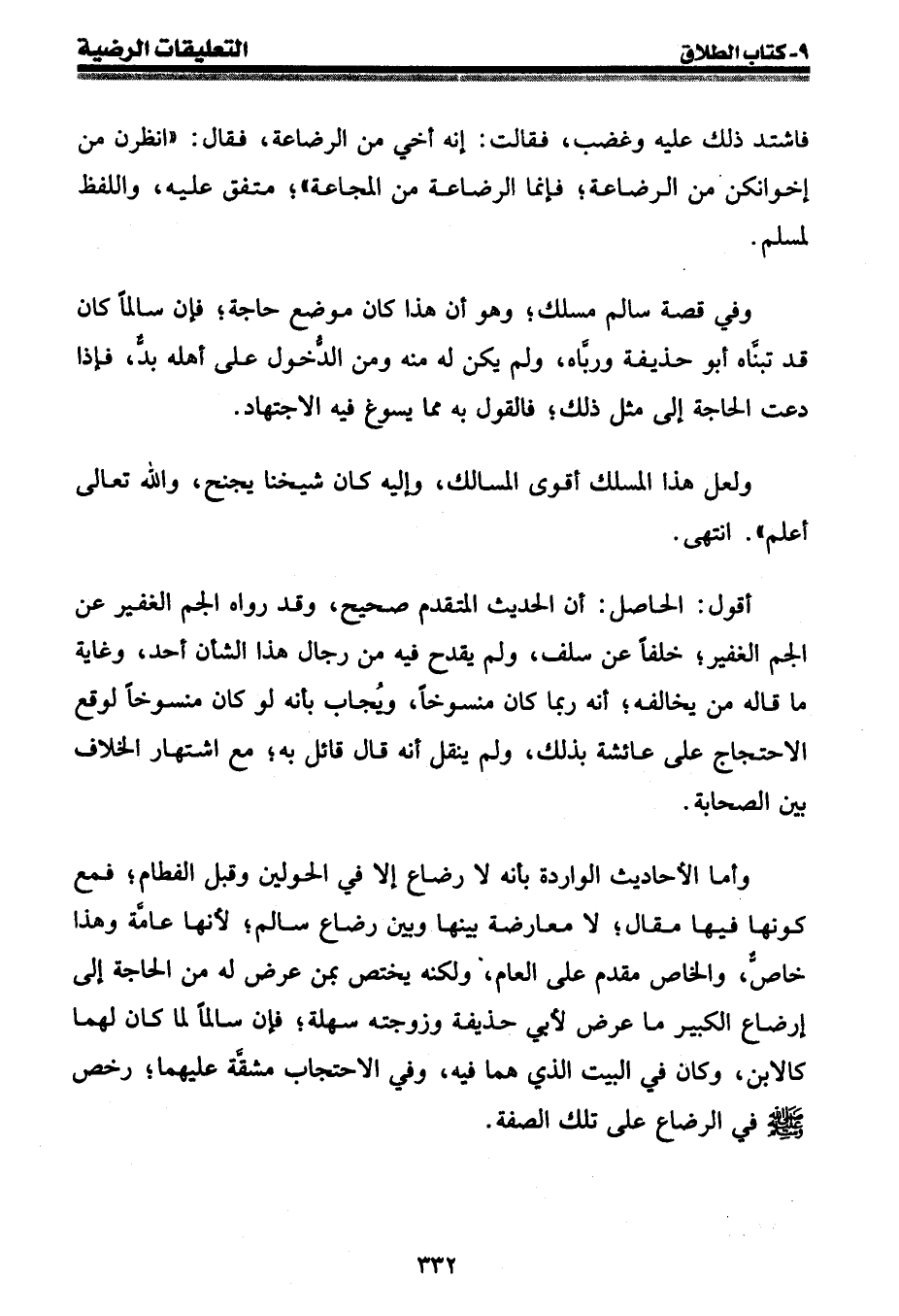 وفي قصة سالم مسلك؛ وهو أن هذا كان موضع حاجة؛ فإن سالما كان قد تبناه أبو حذيفة ورباه، ولم يكن له منه ومن الدخول على أهله بد، فإذا دعت الحاجة إلى مثل ذلك؛ فالقول به مما يسوغ فيه الاجتهاد.