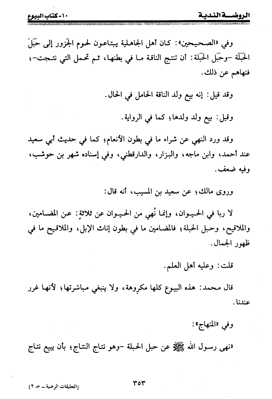 " نهى رسول الله صلى الله عليه وسلم عن حبل الحبلة - وهو نتاج النتاج؛ بأن يبيع نتاج