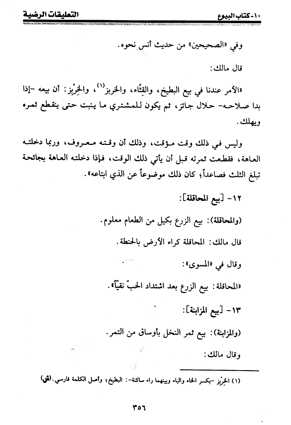 (والمزابنة) : بيع ثمر النخل بأوساق من التمر.