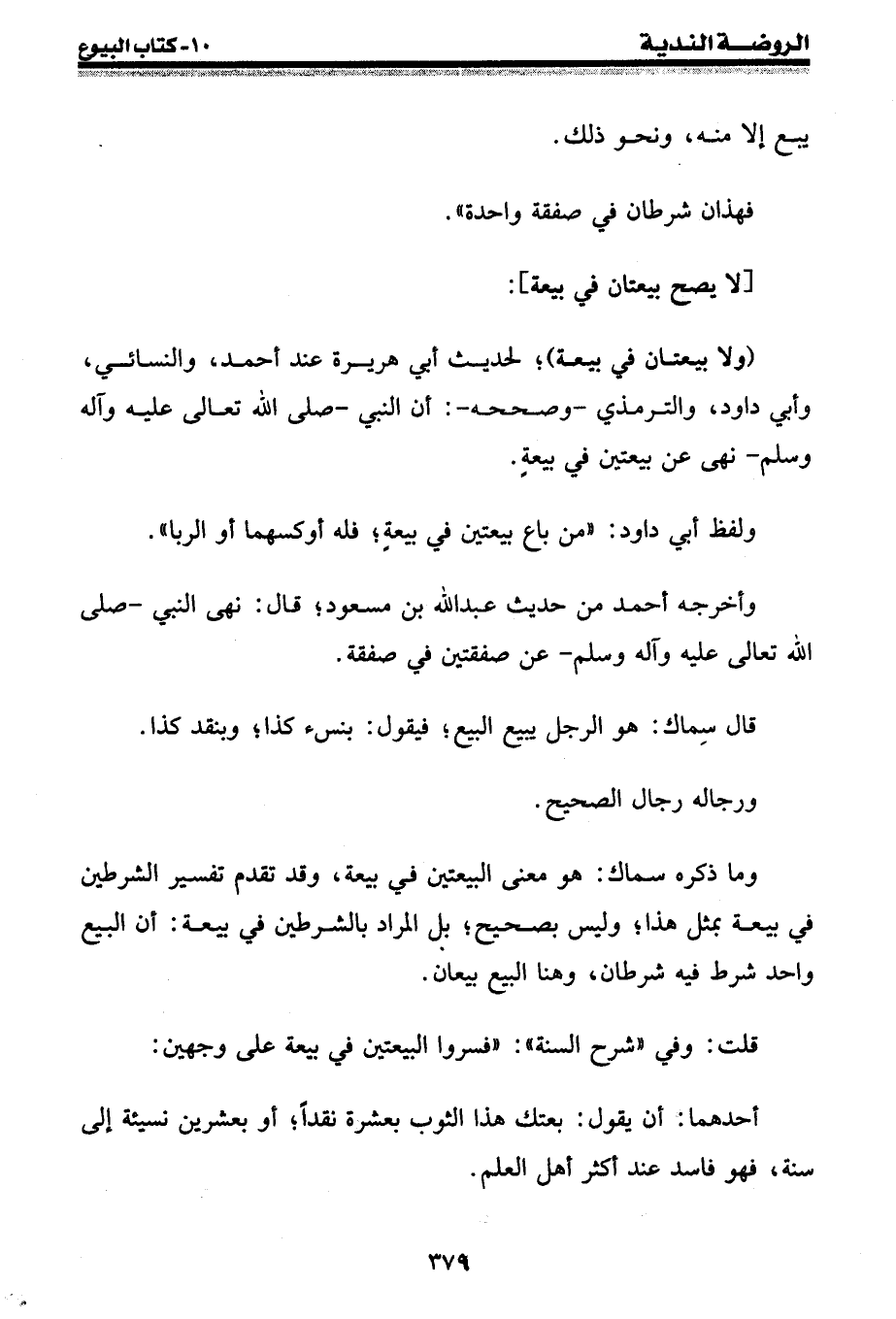 (ولا بيعتان في بيعة) ؛ لحديث أبي هريرة عند أحمد، والنسائي، وأبي داود، والترمذي - وصححه: أن النبي - صلى الله عليه وسلم - نهى عن بيعتين في بيعة.
