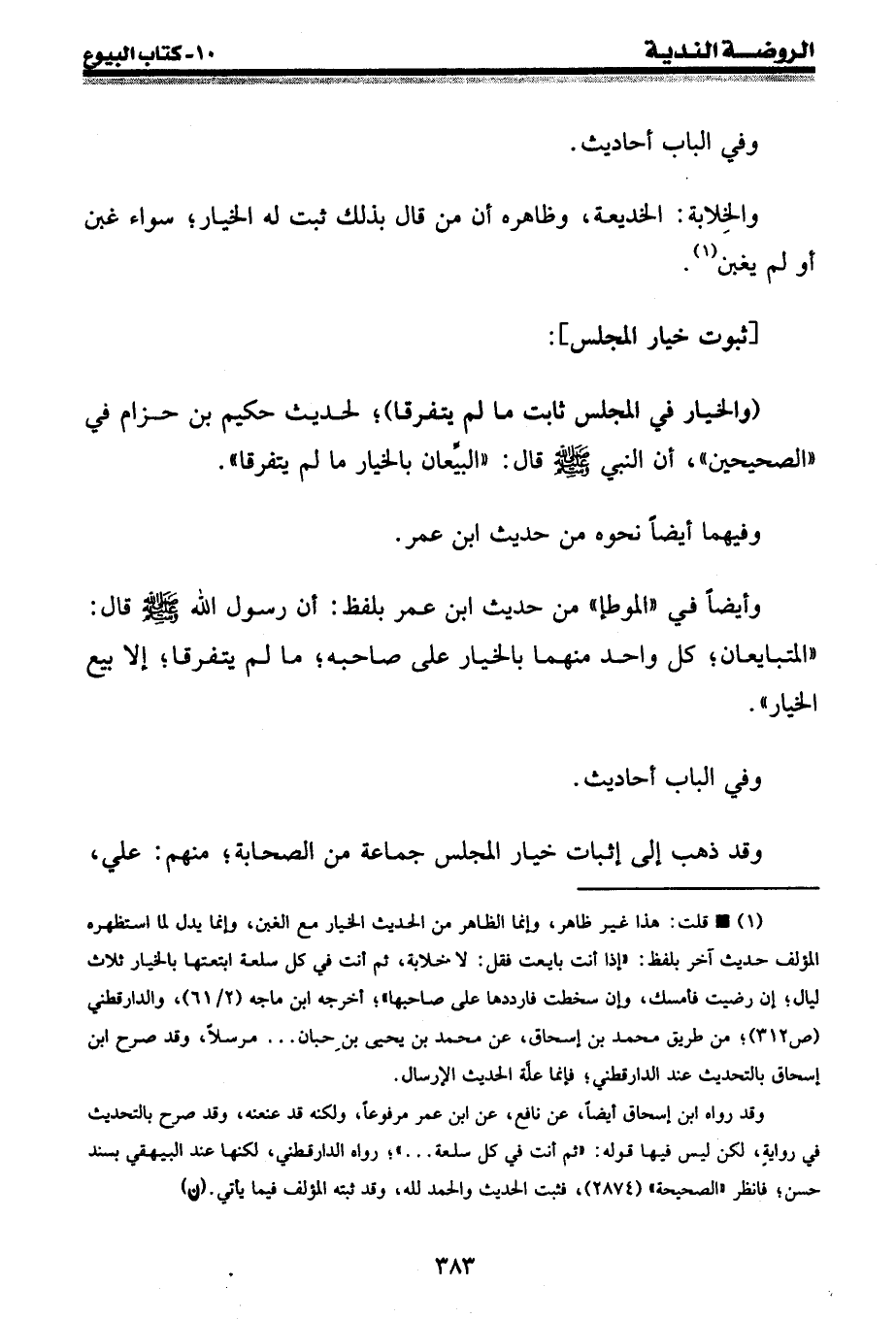 (¬1) • قلت: هذا غير ظاهر، وإنما الظاهر من الحديث الخيار مع الغبن، وإنما يدل لما استظهره المؤلف حديث آخر بلفظ: " إذا أنت بايعت فقل: لا خلابة، ثم أنت في كل سلعة ابتعتها بالخيار ثلاث ليال؛ إن رضيت فأمسك، وإن سخطت فارددها على صاحبها "؛ أخرجه ابن ماجه (2 / 61) ، والدارقطني (ص 312) ؛ من طريق محمد بن إسحاق، عن محمد بن يحيى بن حبان ... مرسلا، وقد صرح ابن إسحاق بالتحديث عند الدارقطني؛ فإنما علة الحديث الإرسال.