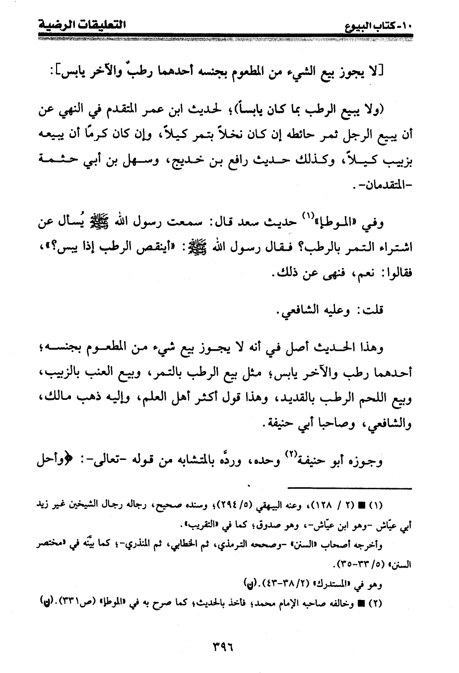 ( [لا يجوز بيع الشيء من المطعوم بجنسه أحدهما رطب والآخر يابس] :)