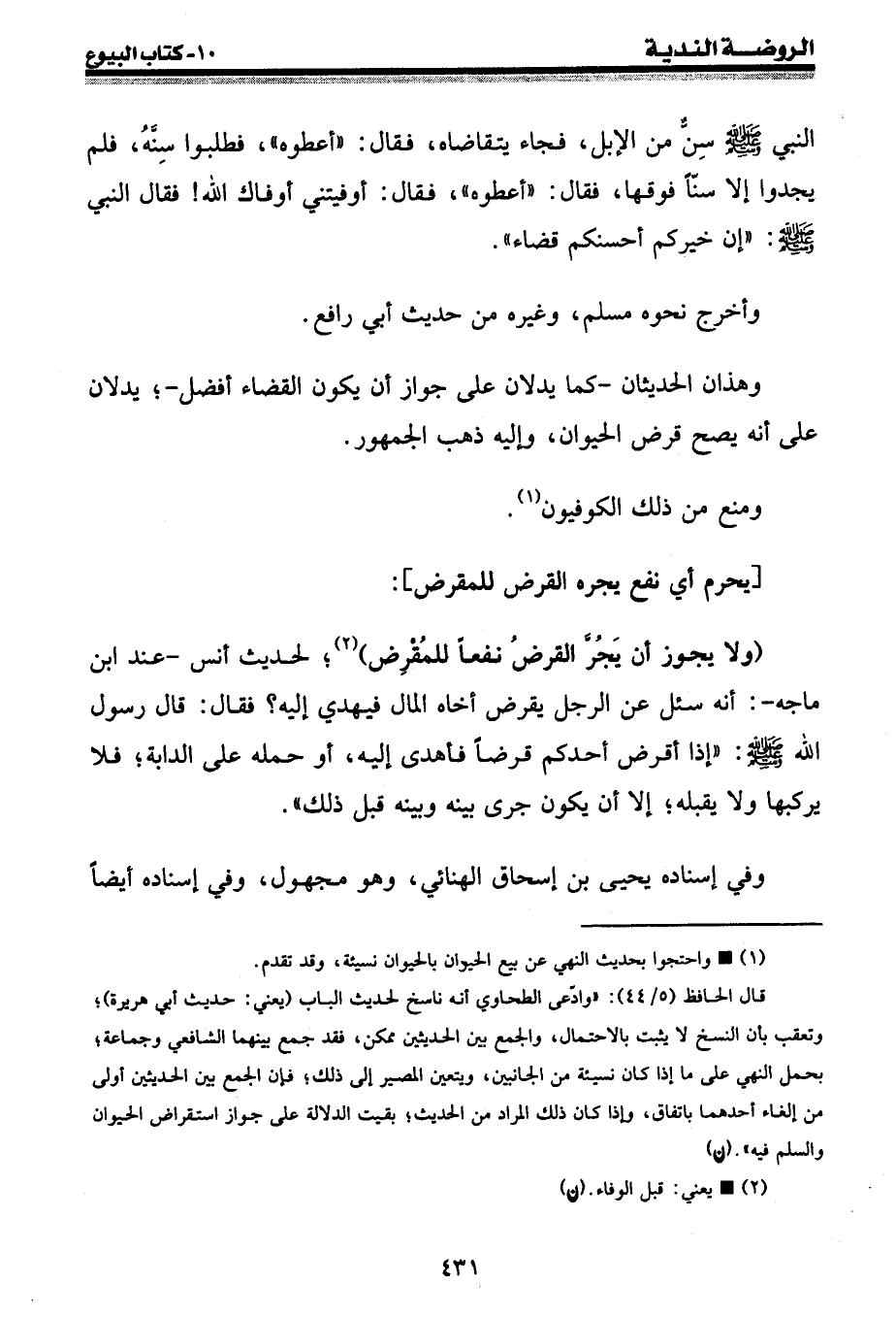 وهذا الحديثان - كما يدلان على جواز أن يكون القضاء أفضل -؛ يدلان على أنه يصح قرض الحيوان، وإليه ذهب الجمهور.