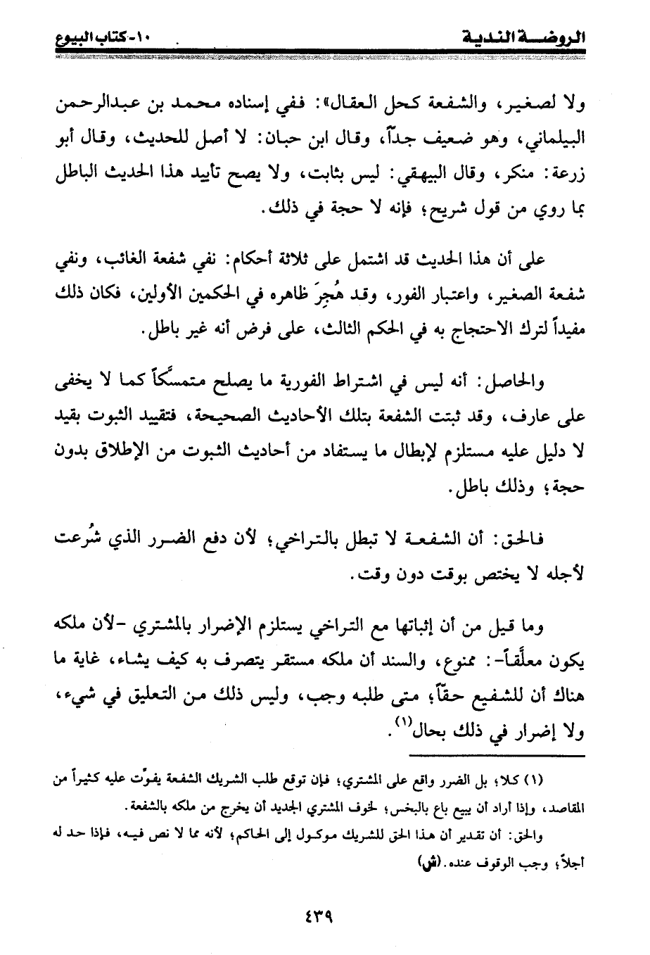 والحاصل: أنه ليس في اشتراط الفورية ما يصلح متمسكا كما لا يخفى على عارف، وقد ثبتت الشفعة بتلك الأحاديث الصحيحة، فتقييد الثبوت بقيد لا دليل عليه مستلزم لإبطال ما يستفاد من أحاديث الثبوت من الإطلاق بدون حجة؛ وذلك باطل.