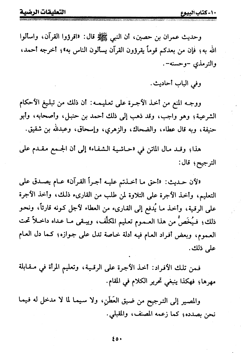 فمن تلك الأفراد: " أخذ الأجرة على الرقية، وتعليم المرأة في مقابلة مهرها؛ فهكذا ينبغي تحرير الكلام في المقام.