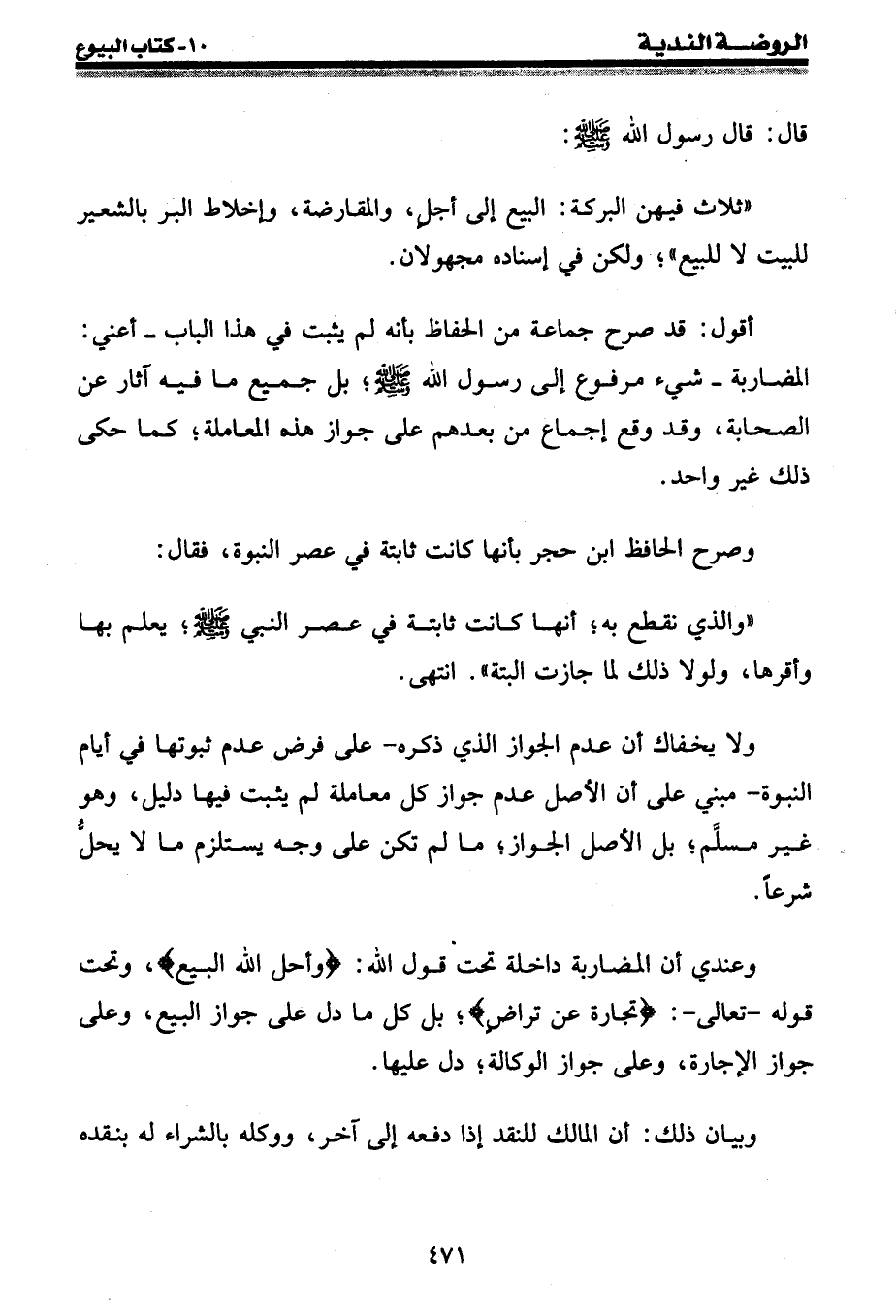 أقول: قد صرح جماعة من الحفاظ بأنه لم يثبت في هذا الباب - أعني: المضاربة - شيء مرفوع إلى رسول الله صلى الله عليه وسلم؛ بل جميع ما فيه آثار عن الصحابة، وقد وقع إجماع من بعدهم على جواز هذه المعاملة؛ كما حكى ذلك غير واحد.
