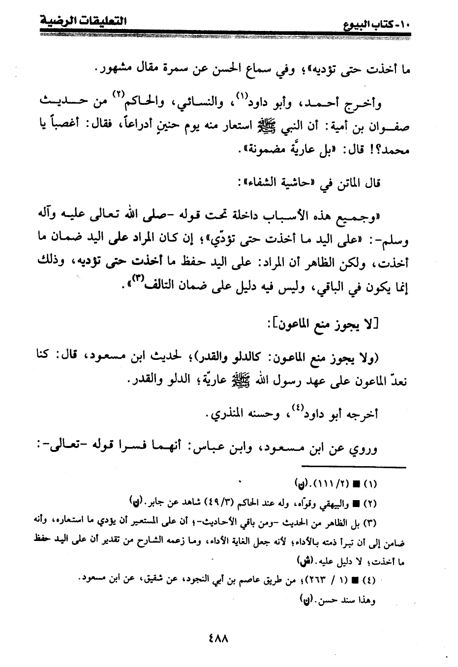 (¬3) بل الظاهر من الحديث - ومن باقي الأحاديث -؛ أن على المستعير أن يؤدي ما استعاره، وأنه ضامن إلى أن تبرأ ذمته بالأداء؛ لأنه جعل الغاية الأداء، وما زعمه الشارح من تقدير أن على اليد حفظ ما أخذت؛ لا دليل عليه. (ش)