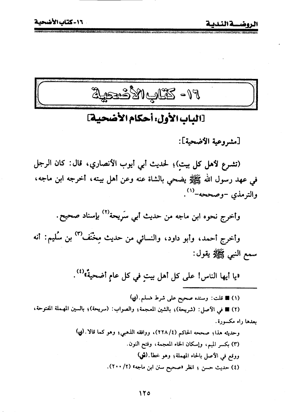 " يا أيها الناس! على كل أهل بيت في كل عام أضحية " (¬4) .