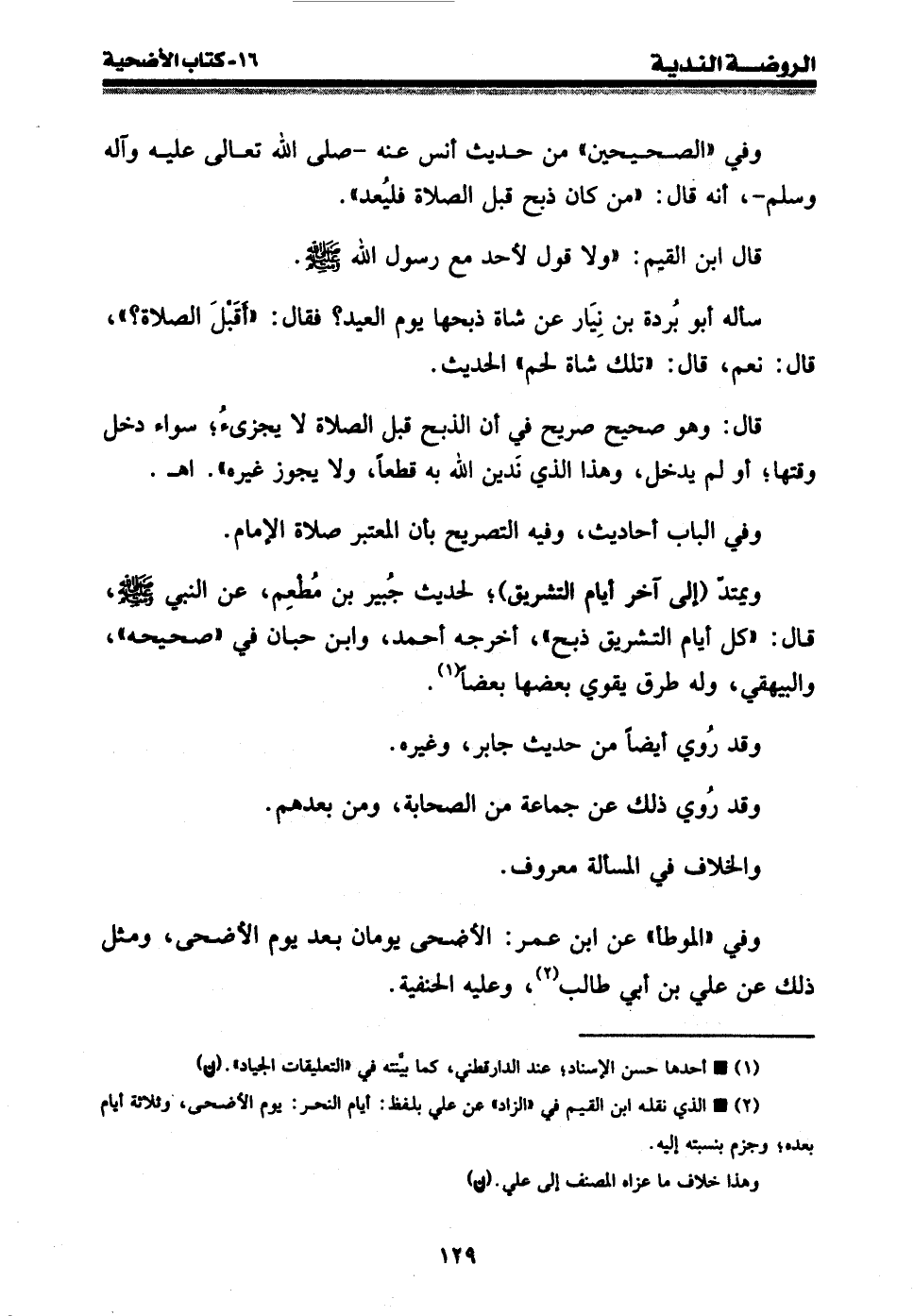 وفي " الصحيحين " من حديث أنس عنه - صلى الله عليه وسلم -، أنه قال: " من كان ذبح قبل الصلاة فليعد ".