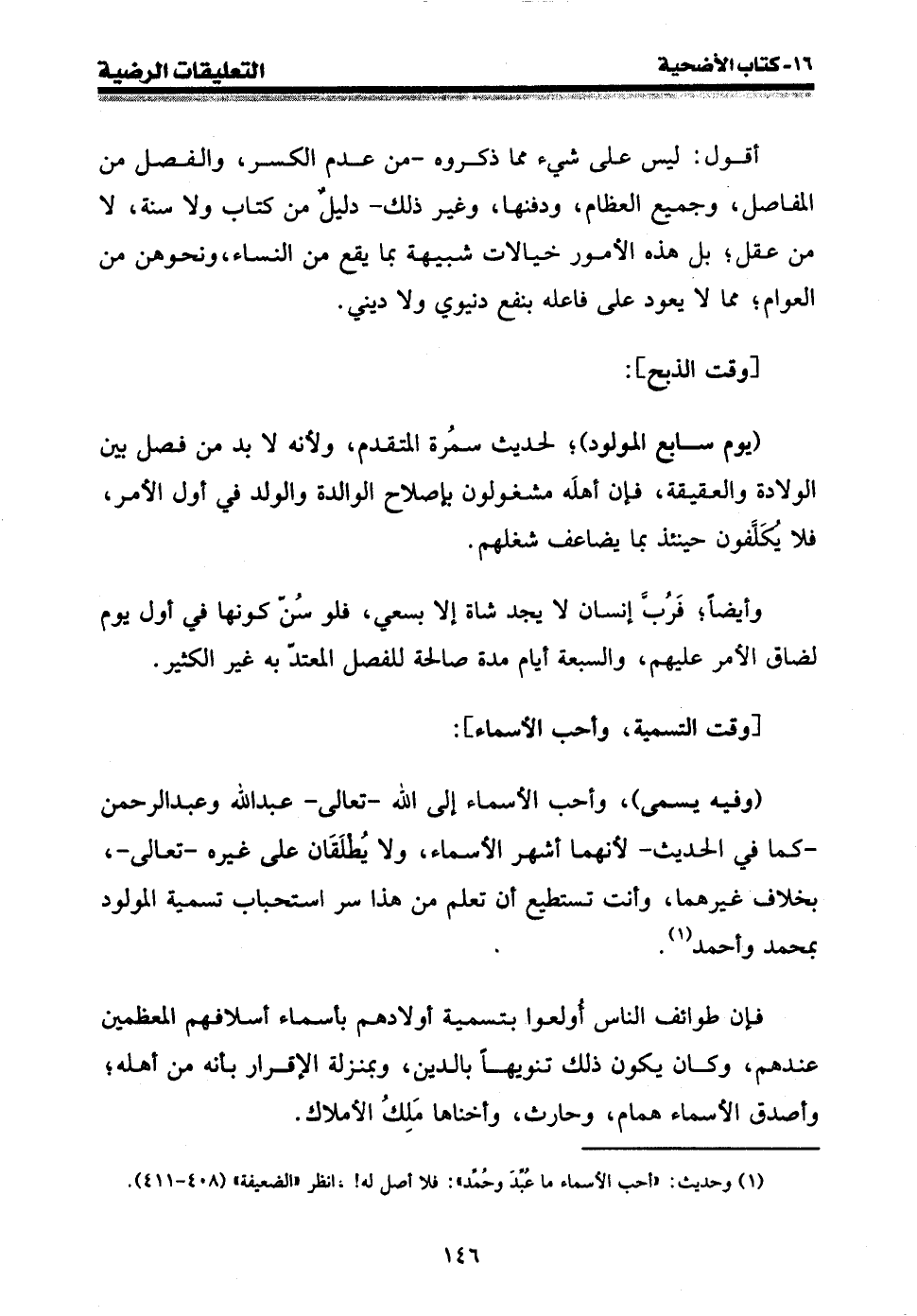 (¬1) وحديث: " أحب الأسماء ما عبد وحمد ": فلا أصل له! ، انظر " الضعيفة " (408 - 411) .