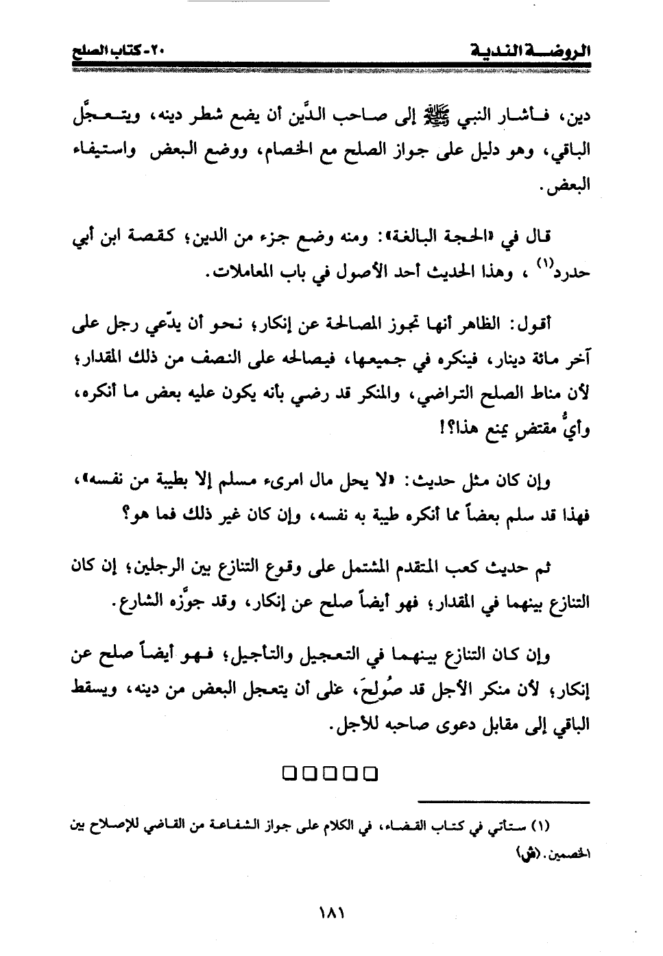 ثم حديث كعب المتقدم المشتمل على وقوع التنازع بين الرجلين؛ إن كان التنازع بينهما في المقدار؛ فهو أيضا صلح عن إنكار، وقد جوزه الشارع.
