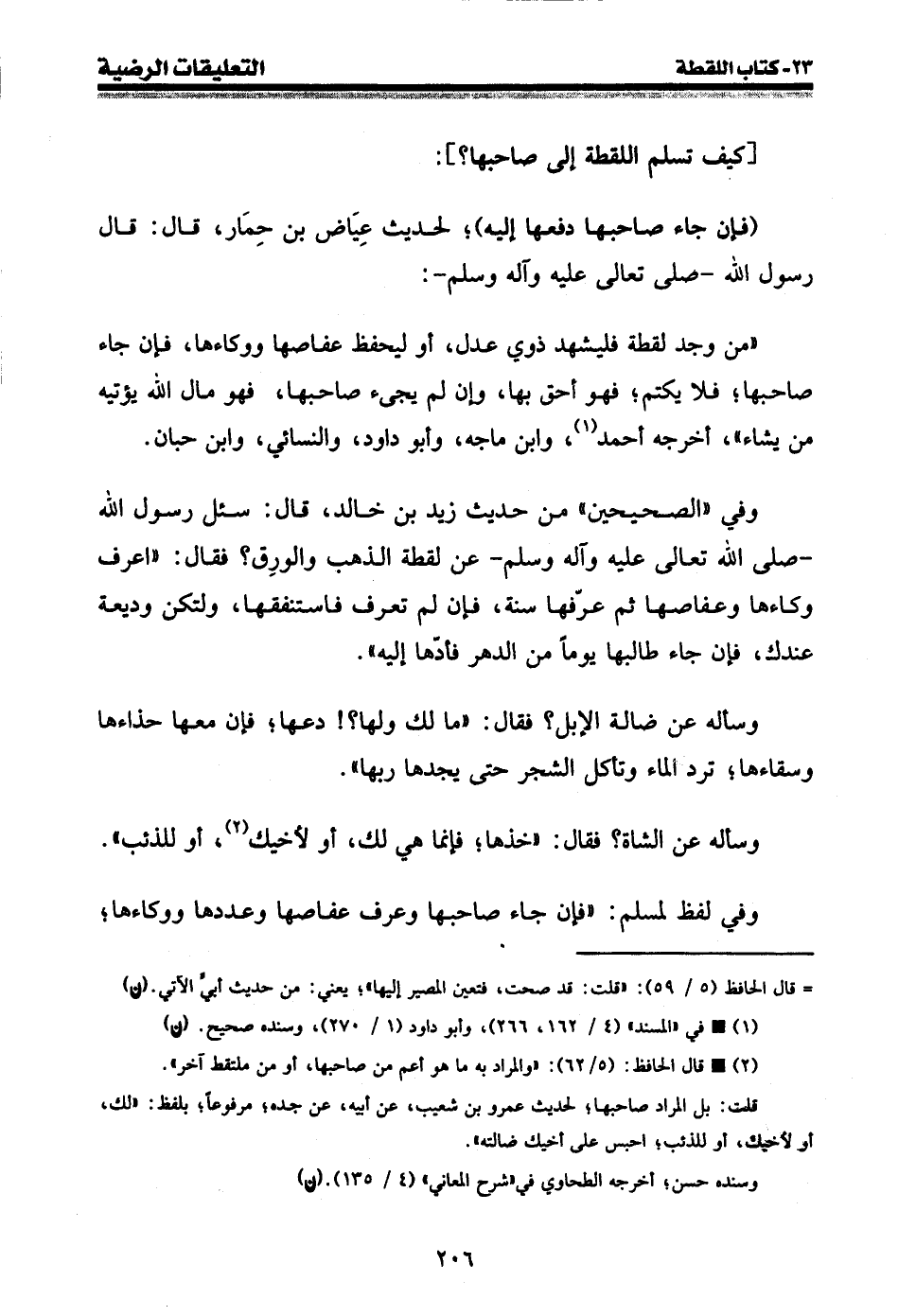 (¬2) • قال الحافظ: (5 / 62) : " والمراد به ما هو أعم من صاحبها، أو من ملتقط آخر ".