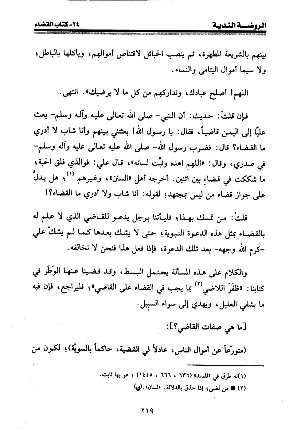 قلت: من تمسك بهذا؛ فليأتنا برجل يدعو للقاضي الذي لا علم له بالقضاء بمثل هذه الدعوة النبوية؛ حتى لا يشك بعدها كما لم يشك علي - كرم الله وجهه - بعد تلك الدعوة، فإذا فعل هذا فنحن لا نخالفه.