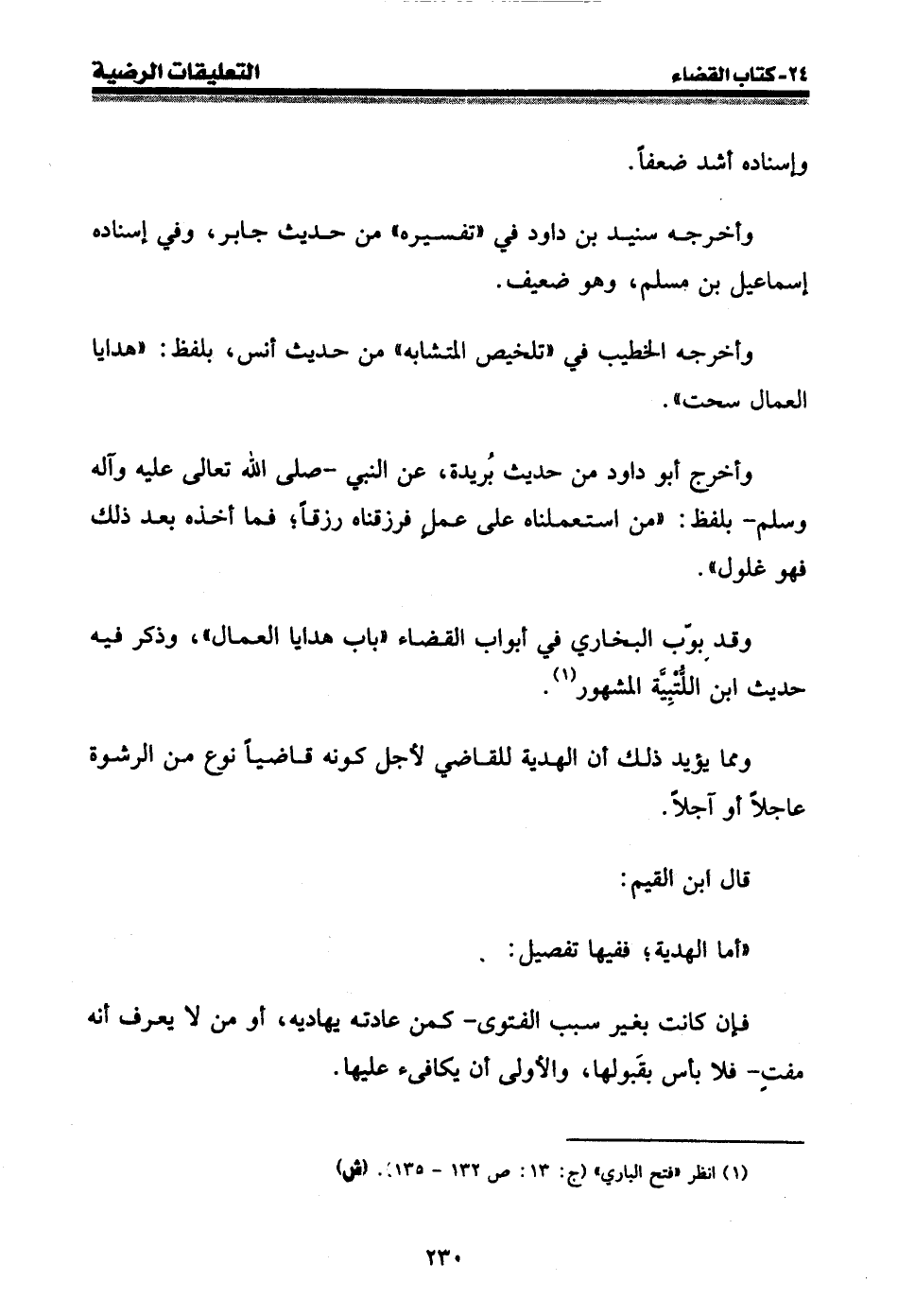 وقد بوب البخاري في أبواب القضاء " باب هدايا العمال "، وذكر فيه حديث ابن اللتبية المشهور (¬1) .