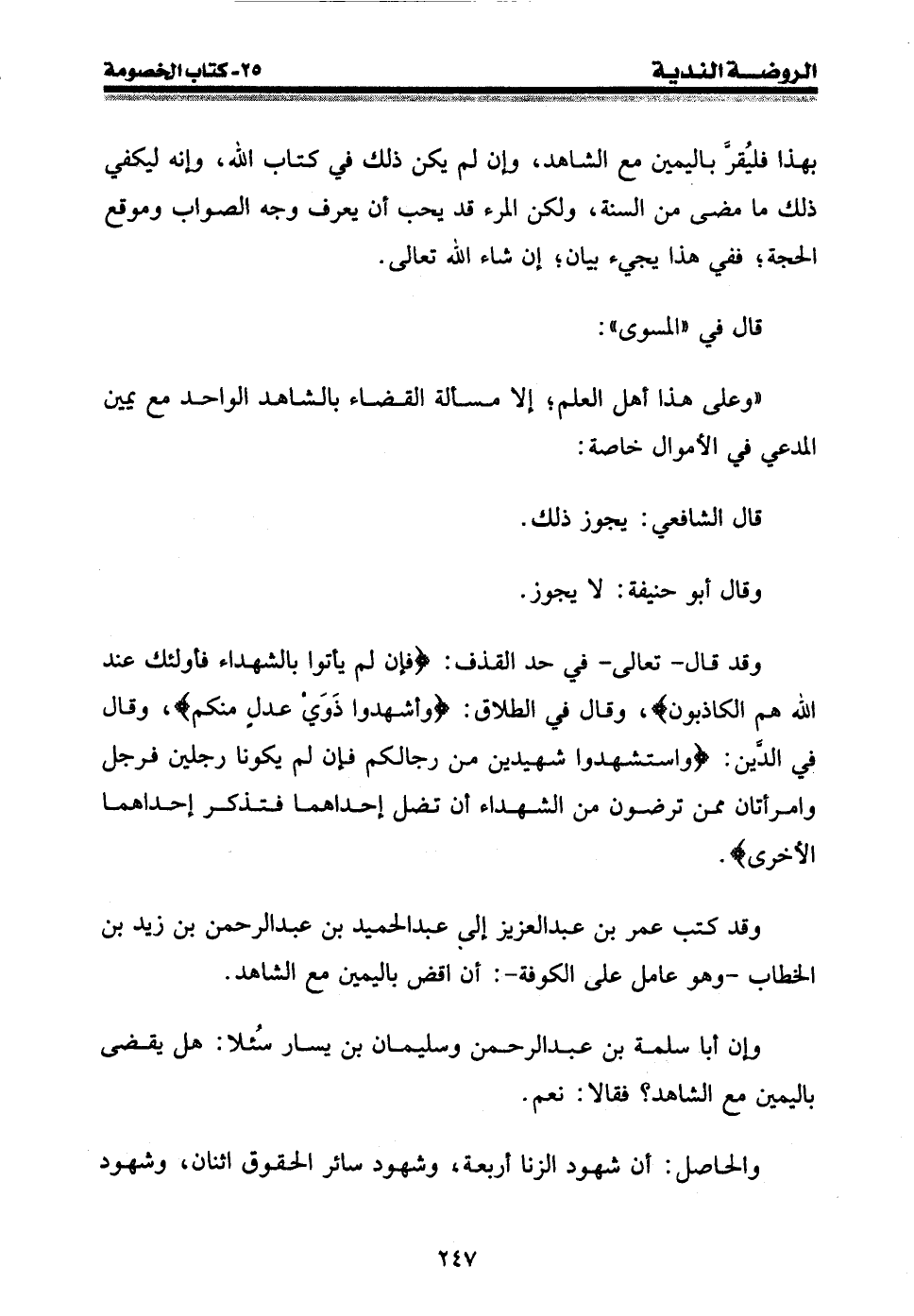 وقد كتب عمر بن عبد العزيز إلى عبد الحميد بن عبد الرحمن بن زيد بن الخطاب - وهو عامل على الكوفة -: أن اقض باليمين مع الشاهد.