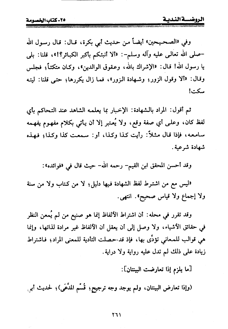 " ليس مع من اشترط لفظ الشهادة فيها دليل؛ لا من كتاب ولا من سنة ولا إجماع ولا قياس صحيح ". انتهى.