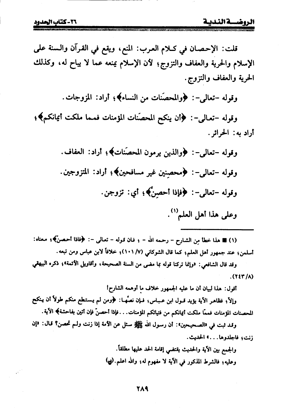 (¬1) • هذا خطأ من الشارح - رحمه الله -؛ فإن قوله - تعالى -: {فإذا أحصن} ؛ معناه: أسلمن؛ عند جمهور أهل العلم؛ كما قال الشوكاني (7 / 101) ؛ خلافا لابن عباس ومن تبعه.