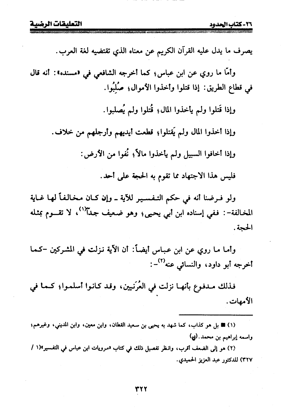 وأما ما روي عن ابن عباس؛ كما أخرجه الشافعي في " مسنده ": أنه قال في قطاع الطريق: إذا قتلوا وأخذوا الأموال؛ صلبوا.