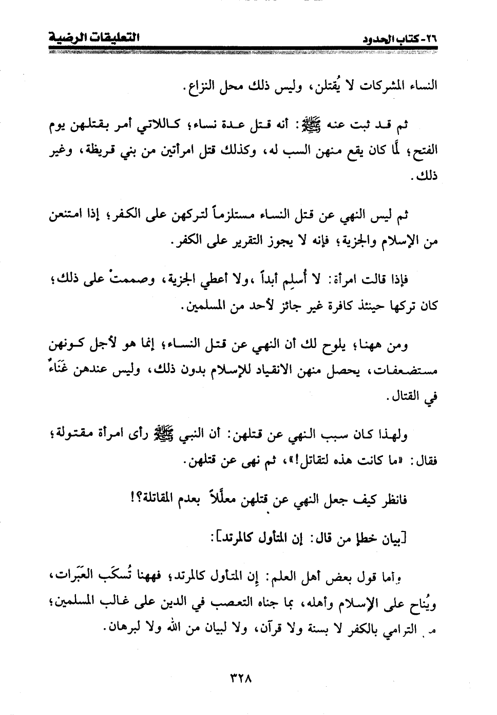 فانظر كيف جعل النهي عن قتلهن معللا بعدم المقاتلة؟}