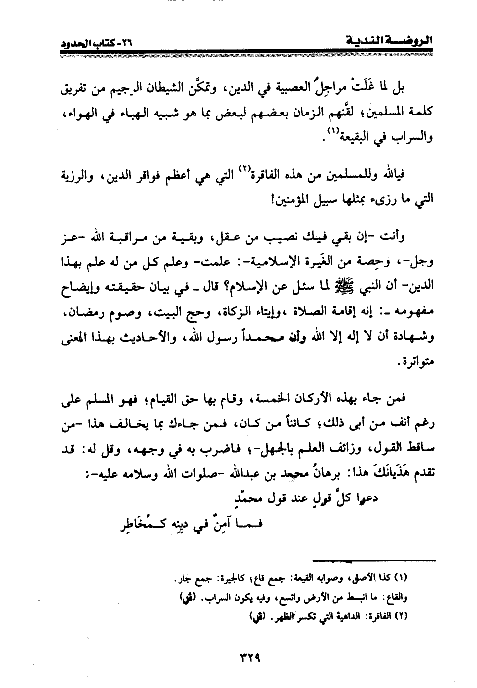 فمن جاء بهذه الأركان الخمسة، وقام بها حق القيام؛ فهو المسلم على رغم أنف من أبى ذلك؛ كائنا من كان، فمن جاءك بما يخالف هذا - من ساقط القول، وزائف العلم بالجهل -؛ فاضرب به في وجهه، وقل له: قد تقدم هذيانك هذا: برهان محمد بن عبد الله - صلوات الله وسلامه عليه -: