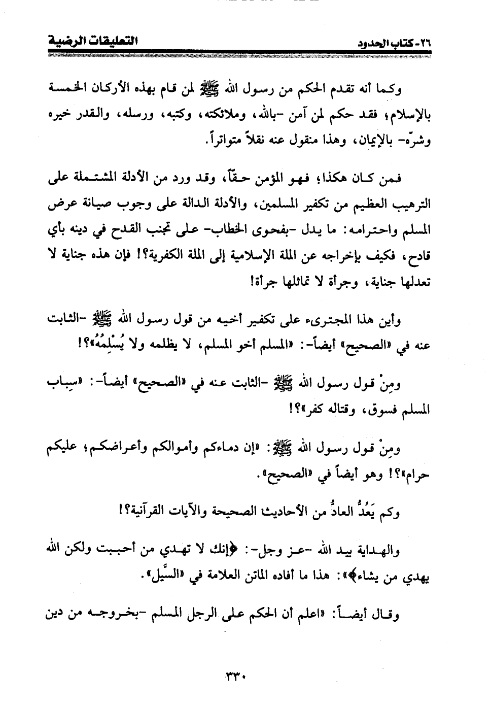 وقال أيضا: " اعلم أن الحكم على الرجل المسلم - بخروجه من دين