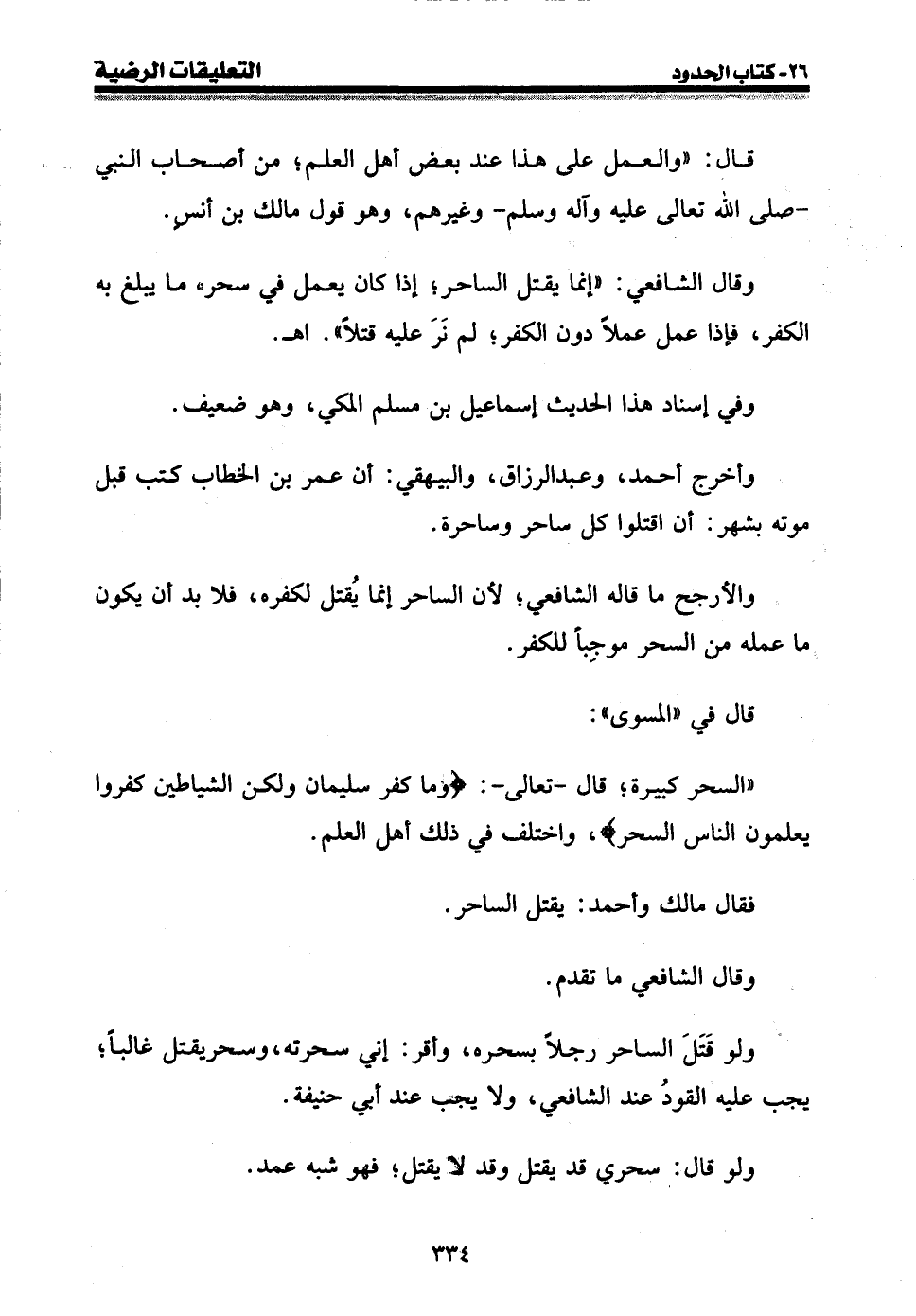 وقال الشافعي: " إنما يقتل الساحر؛ إذا كان يعمل في سحره ما يبلغ به الكفر، فإذا عمل عملا دون الكفر؛ لم نر عليه قتلا ". اه.