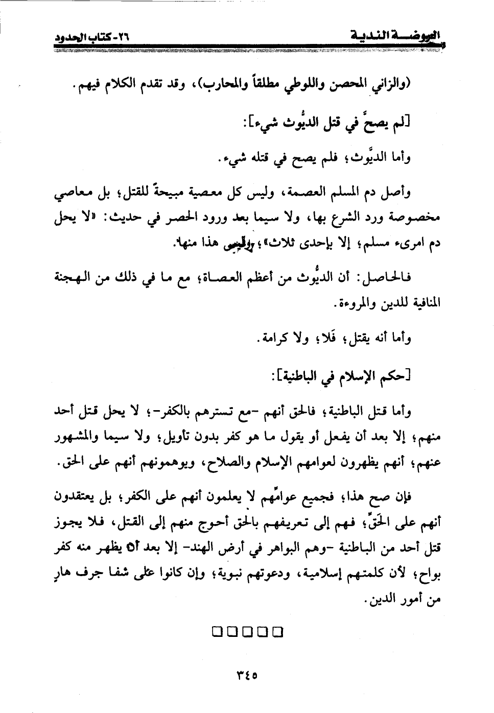 وأما قتل الباطنية؛ فالحق أنهم - مع تسترهم بالكفر -؛ لا يحل قتل أحد منهم؛ إلا بعد أن يفعل أو يقول ما هو كفر بدون تأويل؛ ولا سيما والمشهور عنهم؛ أنهم يظهرون لعوامهم الإسلام والصلاح، ويوهمونهم أنهم على الحق.