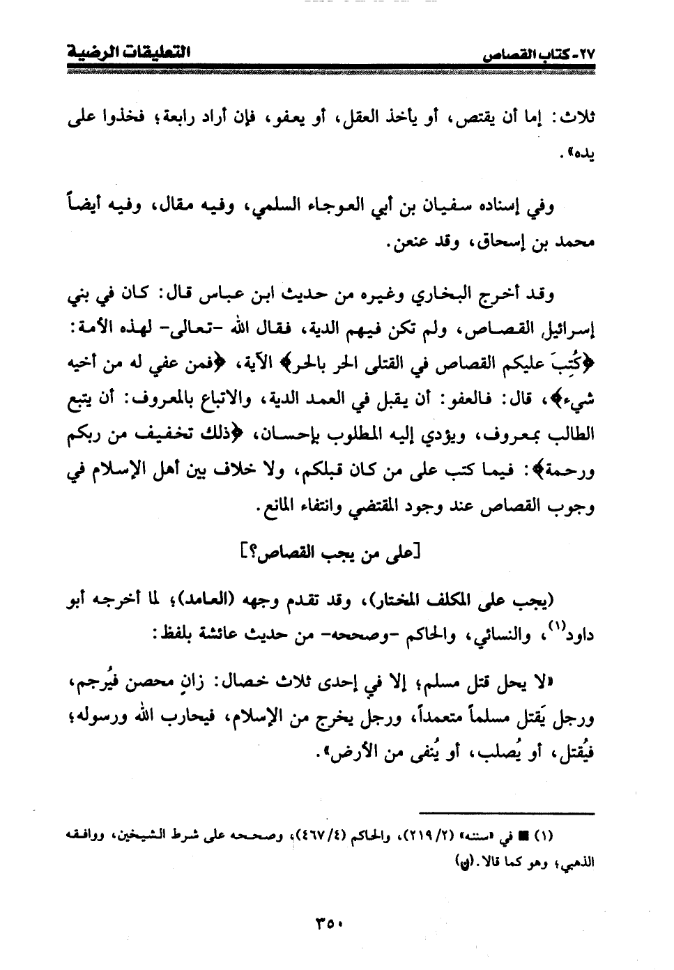 وقد أخرج البخاري وغيره من حديث ابن عباس قال: كان في بني إسرائيل القصاص، ولم تكن فيهم الدية، فقال الله - تعالى - لهذه الأمة: {كتب عليكم القصاص في القتلى الحر بالحر} الآية، {فمن عفي له من أخيه شيء} ، قال: فالعفو: أن يقبل في العمد الدية، والاتباع بالمعروف: أن يتبع الطالب بمعروف، ويؤدي إليه المطلوب بإحسان، {ذلك تخفيف من ربكم ورحمة} : فيما كتب على من كان قبلكم، ولا خلاف بين أهل الإسلام في وجوب القصاص عند وجود المقتضي وانتفاء المانع.
