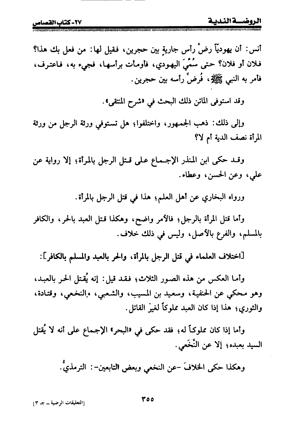 ( [اختلاف العلماء في قتل الرجل بالمرأة، والحر بالعبد والمسلم بالكافر] :)