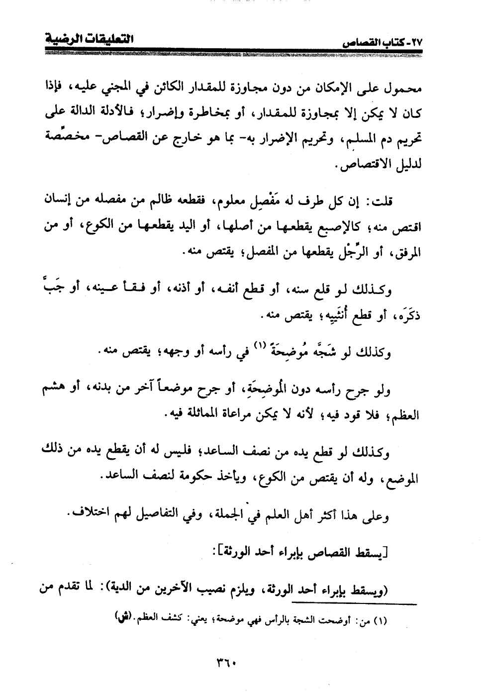 (¬1) من: أوضحت الشجة بالرأس فهي موضحة؛ يعني: كشف العظم. (ش)
