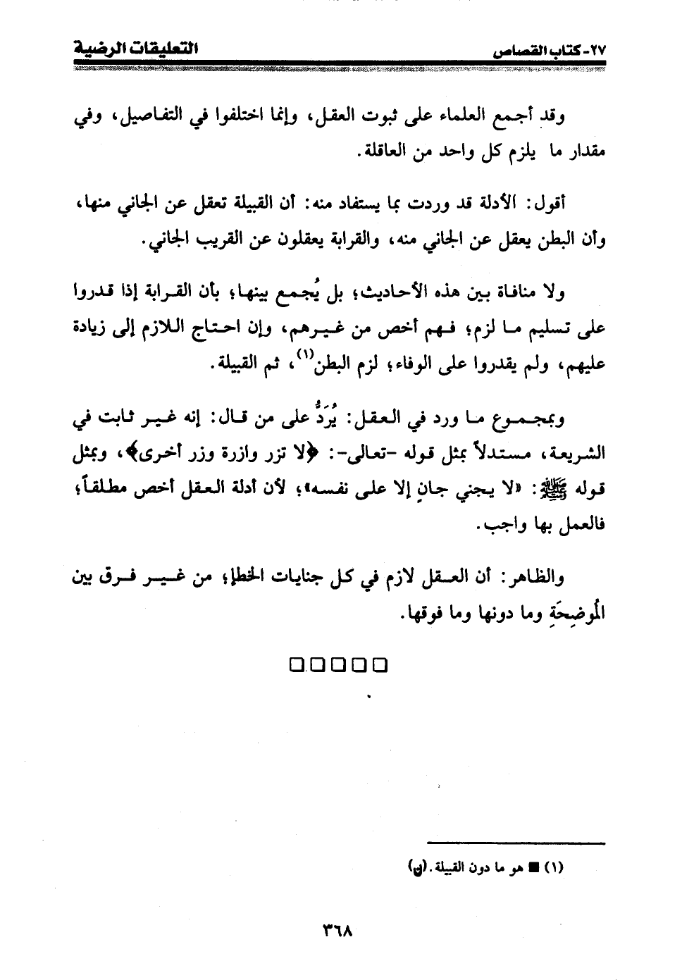 وبمجموع ما ورد في العقل: يرد على من قال: إنه غير ثابت في الشريعة، مستدلا بمثل قوله - تعالى -: {لا تزر وازرة وزر أخرى} ، وبمثل قوله صلى الله عليه وسلم: " لا يجني جان إلا على نفسه "؛ لأن أدلة العقل أخص مطلقا؛ فالعمل بها واجب.