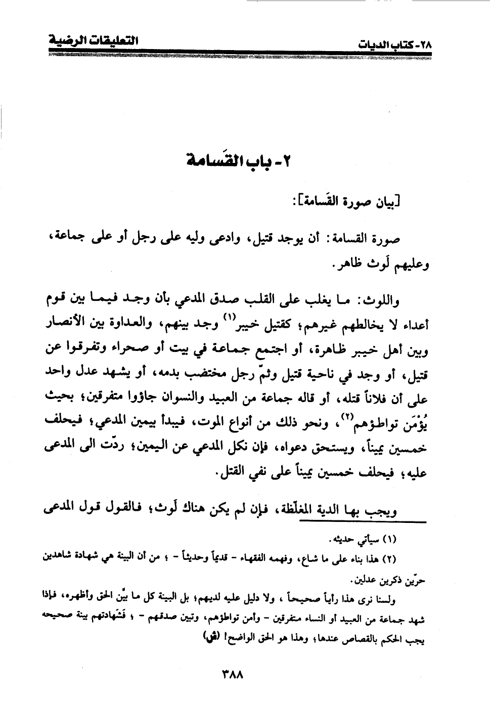 (¬2) هذا بناء على ما شاع، وفهمه الفقهاء - قديما وحديثا -؛ من أن البينة هي شهادة شاهدين حرين ذكرين عدلين.