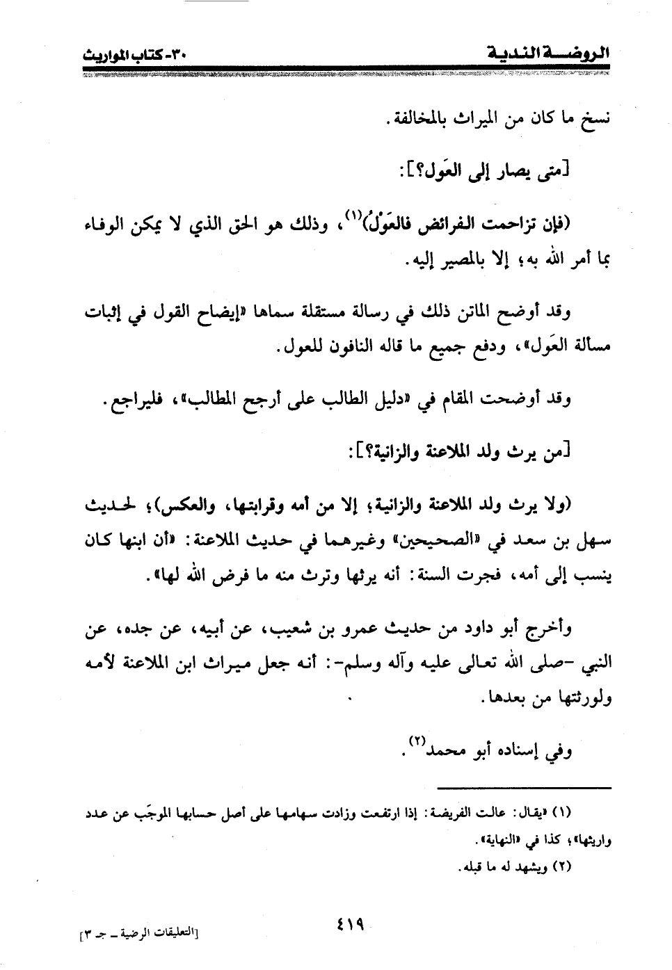 (¬1) " يقال: عالت الفريضة: إذا ارتفعت وزادت سهامها على أصل حسابها الموجب عن عدد واريثها "؛ كذا في " النهاية ".