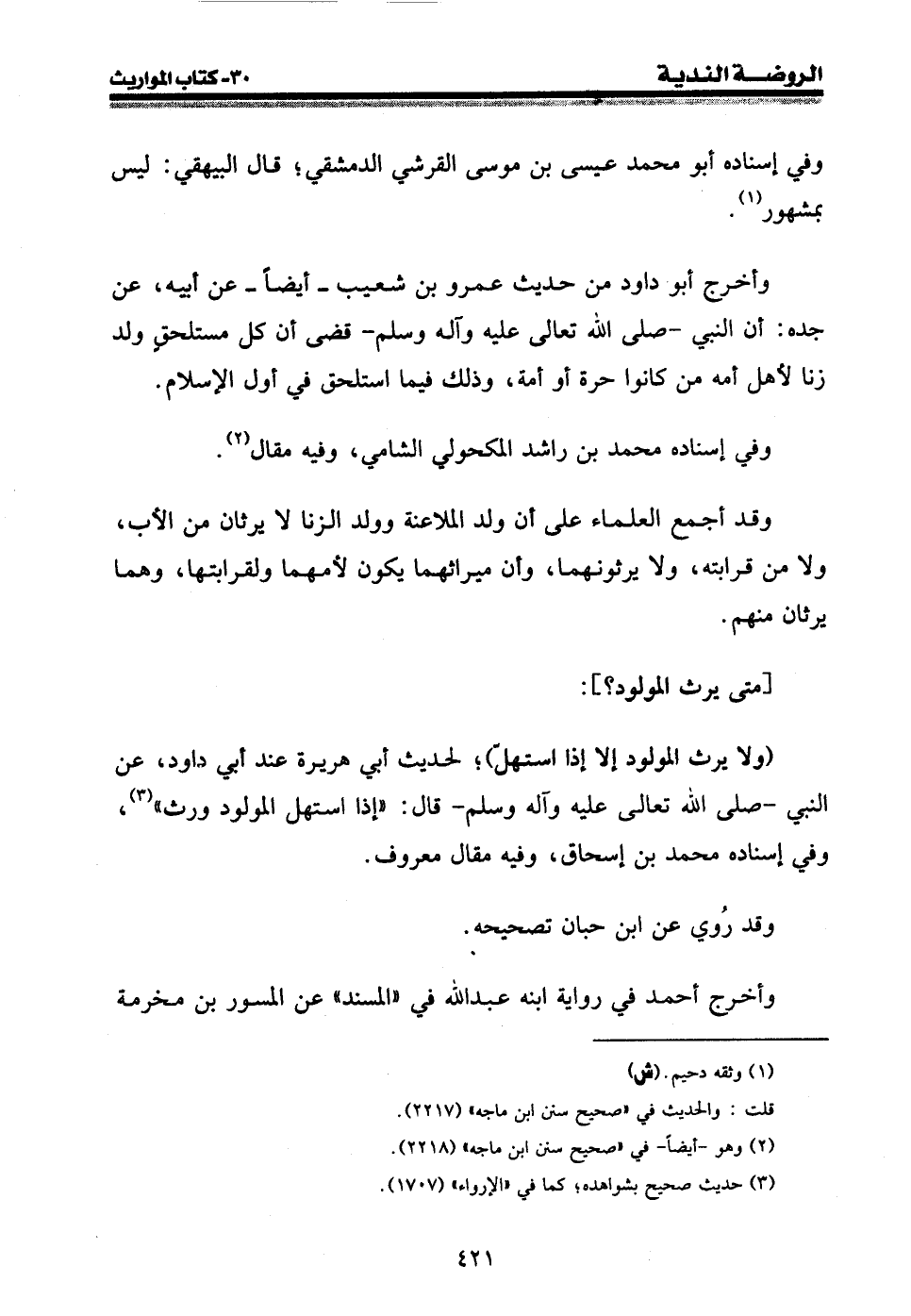 وأخرج أبو داود من حديث عمرو بن شعيب - أيضا - عن أبيه، عن جده: أن النبي - صلى الله عليه وسلم - قضى أن كل مستلحق ولد زنا لأهل أمه من كانوا حرة أو أمة، وذلك فيما استلحق في أول الإسلام.