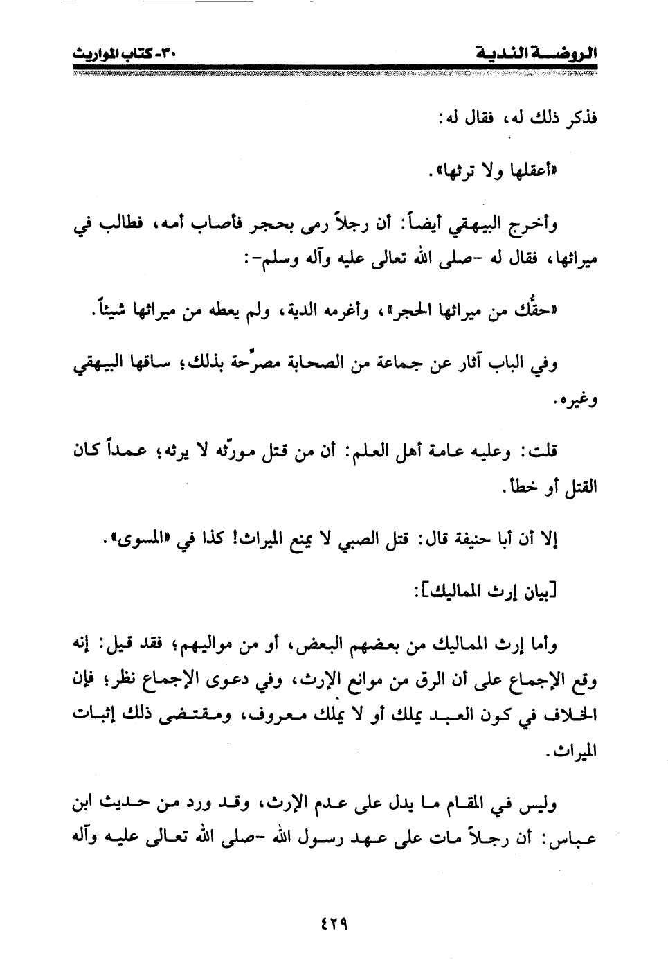 وأخرج البيهقي أيضا: أن رجلا رمى بحجر فأصاب أمه، فطالب في ميراثها، فقال له - صلى الله عليه وسلم -: